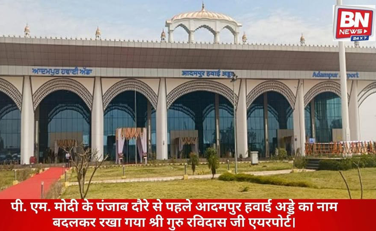आदमपुर (पंजाब): प्रधानमंत्री नरेंद्र मोदी के प्रस्तावित दौरे से पहले आदमपुर एयरपोर्ट का नाम बदलकर ‘श्री गुरु रविदास जी एयरपोर्ट’ कर दिया गया है। यह निर्णय संत श्री गुरु रविदास जी के सामाजिक और आध्यात्मिक योगदान को सम्मान देने के उद्देश्य से लिया गया है।