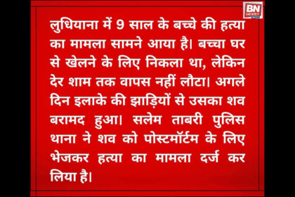 लुधियाना में 9 साल के बच्चे की हत्या का मामला सामने आया है। बच्चा घर से खेलने के लिए निकला था, लेकिन देर शाम तक वापस नहीं लौटा। अगले दिन इलाके की झाड़ियों से उसका शव बरामद हुआ। सलेम टाबरी पुलिस थाना न...