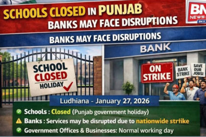 рдкрдВрдЬрд╛рдм рд╕рд░рдХрд╛рд░ рдиреЗ 77рд╡реЗрдВ рдЧрдгрддрдВрддреНрд░ рджрд┐рд╡рд╕ рд╕рдорд╛рд░реЛрд╣ рдХреЗ рдмрд╛рдж рд░рд╛рдЬреНрдпрднрд░ рдореЗрдВ 27 рдЬрдирд╡рд░реА 2026 рдХреЛ рд╕рднреА рд╕рд░рдХрд╛рд░реА рдФрд░ рдирд┐рдЬреА рд╕реНрдХреВрд▓реЛрдВ рдореЗрдВ рдЕрд╡рдХрд╛рд╢ рдШреЛрд╖рд┐рдд рдХрд┐рдпрд╛ рд╣реИред рдпрд╣ рдЫреБрдЯреНрдЯреА рд▓реБрдзрд┐рдпрд╛рдирд╛ рд╕рд╣рд┐рдд рдкреВрд░реЗ рдкрдВрдЬрд╛рдм рдореЗрдВ рд▓рд╛рдЧреВ рд░рд╣реЗрдЧреАред рд╣рд╛рд▓рд╛рдВрдХрд┐, рдЗрд╕ рджрд┐рди рдмреИрдВрдХ...