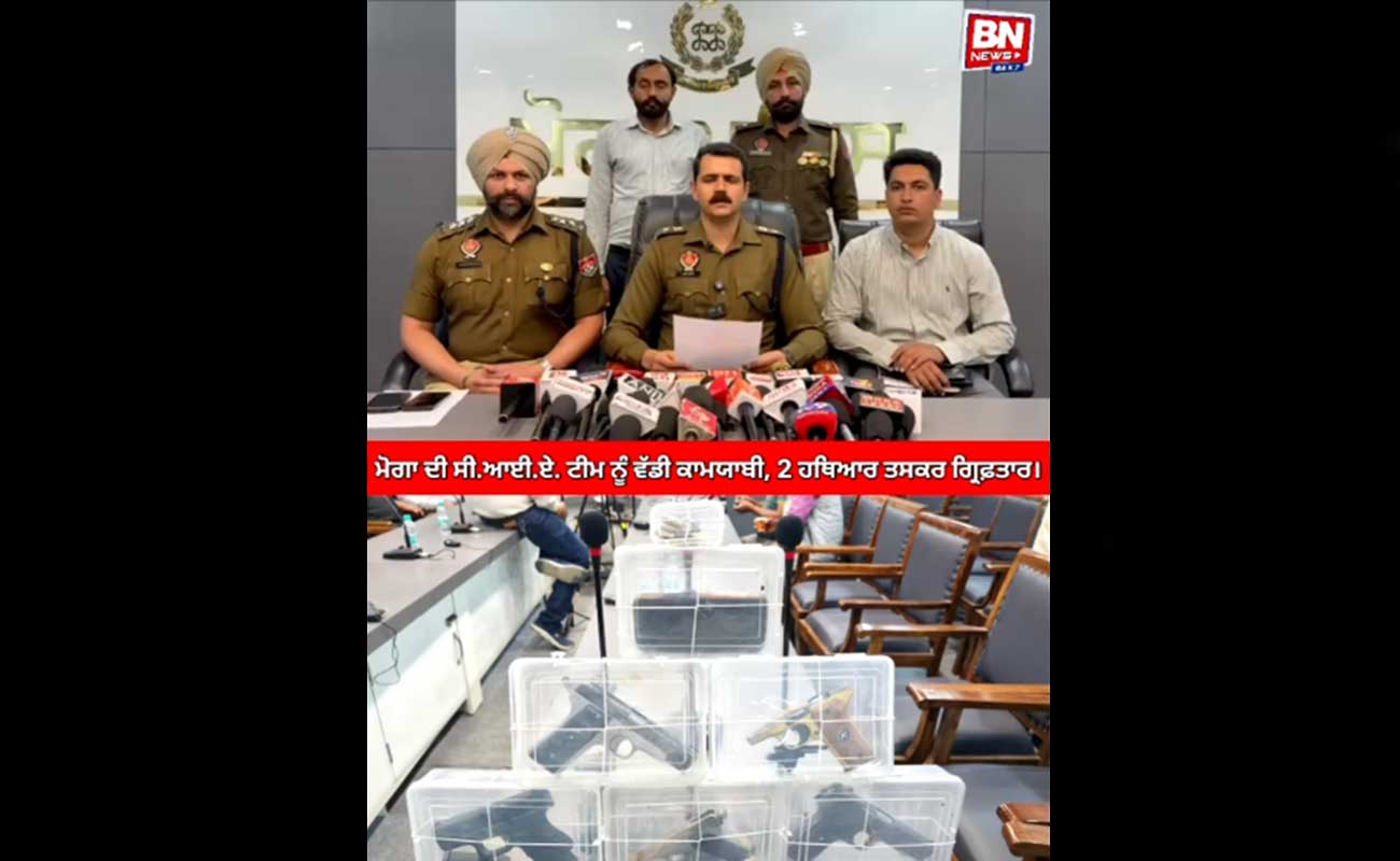 ਪੰਜਾਬ ਦੇ ਮਾਨਯੋਗ ਡੀਜੀਪੀ ਦੇ ਨਿਰਦੇਸ਼ਾਂ ਤਹਿਤ ਅਸਾਮਾਜਿਕ ਤੱਤਾਂ ਵਿਰੁੱਧ ਚਲਾਏ ਗਏ “ਆਪਰੇਸ਼ਨ ਪ੍ਰਹਾਰ” ਦੌਰਾਨ Punjab Police ਨੂੰ ਵੱਡੀ ਕਾਮਯਾਬੀ ਮਿਲੀ। Neelambari Jagdale, ਆਈਜੀ ਫਰੀਦਕੋਟ ਰੇਂਜ ਅਤੇ Ajay Gandhi, ਐਸਐਸਪੀ ਮੋਗਾ ਦੇ ਦਿਸ਼ਾ-ਨਿਰਦੇਸ਼ ਹੇਠ ਮੋਗਾ ਪੁਲਿਸ ਨੇ ਕਾਰਵਾਈ ਕੀਤੀ। Bal Krishan Singla, ਐਸਪੀ ਅਤੇ Sukh Amrit Singh, ਡੀਐਸਪੀ ਦੀ ਦੇਖਰੇਖ ਵਿੱਚ ਸੀਆਈਏ ਸਟਾਫ ਮੋਗਾ ਦੀ ਪੁਲਿਸ ਪਾਰਟੀ ਨੇ ਦੋ ਵਿਅਕਤੀਆਂ ਨੂੰ ਕਾਬੂ ਕਰਕੇ ਉਨ੍ਹਾਂ ਕੋਲੋਂ 05 ਪਿਸਤੌਲ, 06 ਮੈਗਜ਼ੀਨ ਅਤੇ 06 ਜਿੰਦਾ ਕਾਰਤੂਸ ਬਰਾਮਦ ਕੀਤੇ। ਪੁਲਿਸ ਵੱਲੋਂ ਮਾਮਲੇ ਦੀ ਜਾਂਚ ਜਾਰੀ ਹੈ ਅਤੇ ਹੋਰ ਖੁਲਾਸਿਆਂ ਦੀ ਸੰਭਾਵਨਾ ਜਤਾਈ ਜਾ ਰਹੀ ਹੈ।