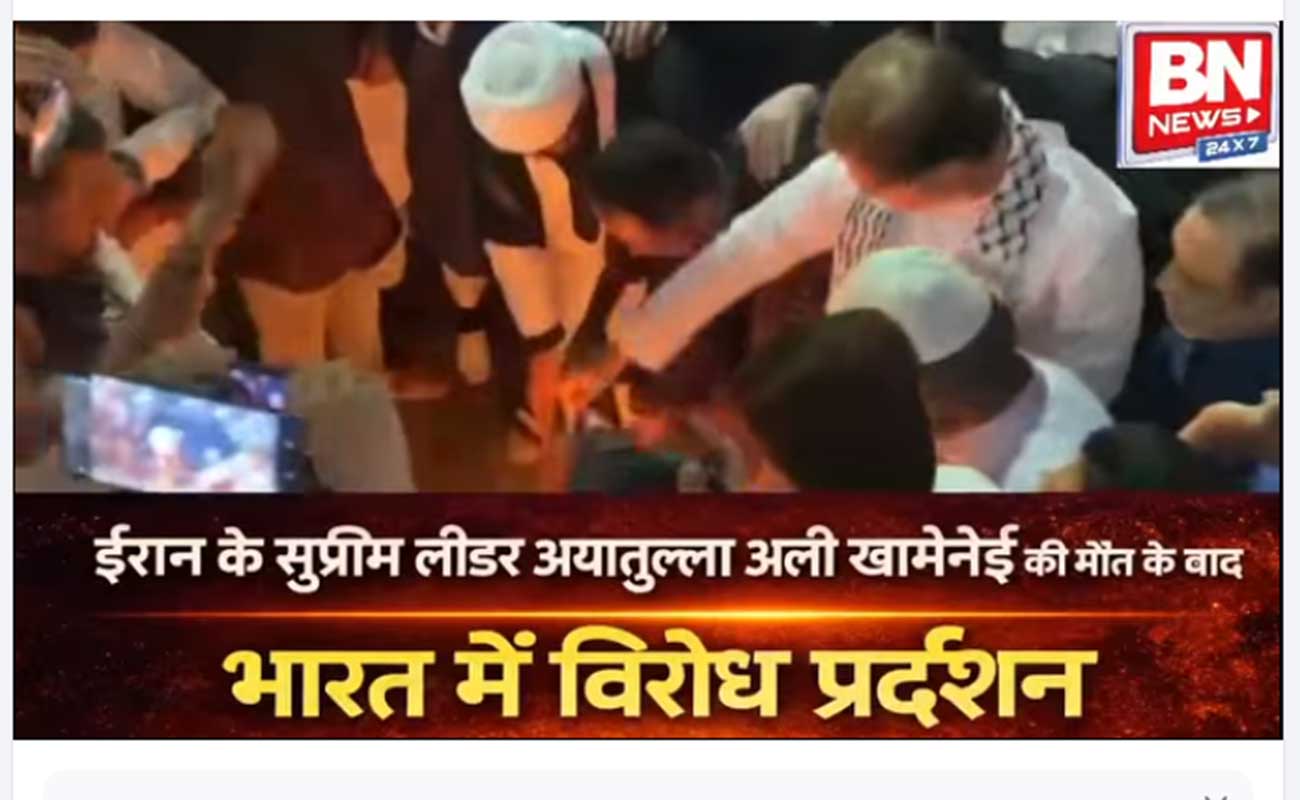 ईरान के सुप्रीम लीडर Ali Khamenei की मौत की खबर के बाद भारत के विभिन्न हिस्सों में विरोध प्रदर्शन देखने को मिले। बताया जा रहा है कि कुछ समूहों ने इस घटना को लेकर अपनी प्रतिक्रिया व्यक्त करते हुए सड़कों पर प्रदर्शन किया। सुरक्षा व्यवस्था को ध्यान में रखते हुए प्रशासन ने कई स्थानों पर सतर्कता बढ़ा दी है। अधिकारियों का कहना है कि स्थिति पर नजर रखी जा रही है और कानून-व्यवस्था बनाए रखने के लिए आवश्यक कदम उठाए जा रहे हैं।