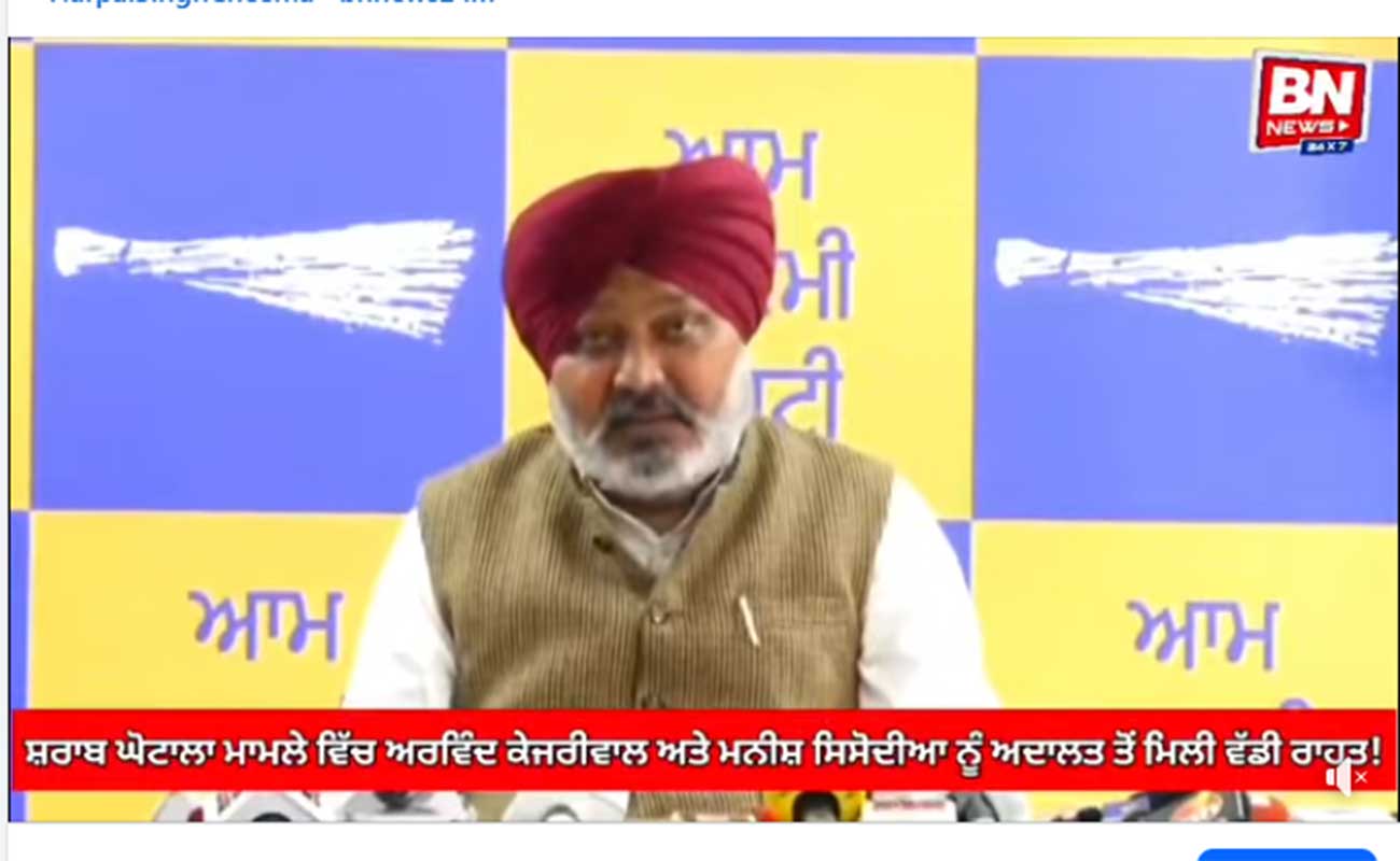 Following the relief granted to Arvind Kejriwal and Manish Sisodia in the alleged liquor scam case, Punjab Cabinet Minister Harpal Singh Cheema termed the decision as historic. He stated that the honorable court’s verdict has brought the truth to light. Cheema alleged that attempts were made through the country’s top agencies to tarnish the image of the Aam Aadmi Party, but those efforts failed. He further accused the BJP of conspiring to question the integrity of the party and acting against the Constitution. Cheema emphasized that the court’s decision marks a victory for democracy and the Constitution, asserting that ultimately, truth prevails.