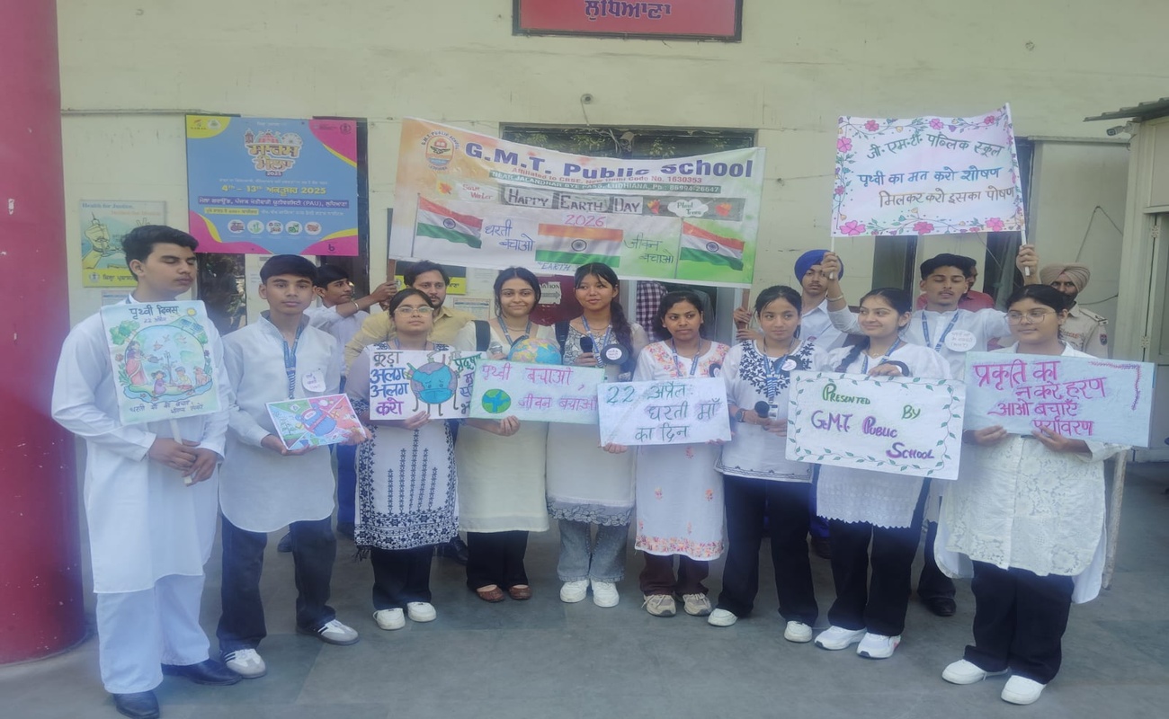 जी. एम. टी. पब्लिक स्कूल, नजदीक जालंधर बाईपास लुधियाना के छात्र-छात्राओं ने पर्यावरण संरक्षण के प्रति अपनी जिम्मेदारी निभाते हुए ‘पृथ्वी दिवस’ (Earth Day) के उपलक्ष्य पर एक विशेष जागरूकता अभियान चलाया। इस अभियान के तहत विद्यार्थियों ने शहर के प्रमुख सार्वजनिक स्थल पर “धरती माँ के रखवाले” नामक नुक्कड़ नाटक का प्रभावशाली मंचन किया। नाटक की सजीव प्रस्तुति ने न केवल राहगीरों का ध्यान अपनी ओर खींचा, बल्कि वहाँ मौजूद सैकड़ों लोगों को पर्यावरण के प्रति गंभीर चिंतन करने के लिए प्रेरित किया ।